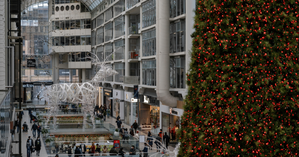 Toronto is een uitstekende stad om te winkelen en tijdens de kerstperiode wordt dat nog leuker. Winkelcentra zoals de Eaton Centre pakken uit met grote kerstbomen, lichtshows en feestelijke etalages. In luxe wijken zoals Yorkville vind je boetieks die elk raam zorgvuldig aankleden met kerstdecoratie waardoor het hele winkelgebied aanvoelt als een levende kerstkaart.