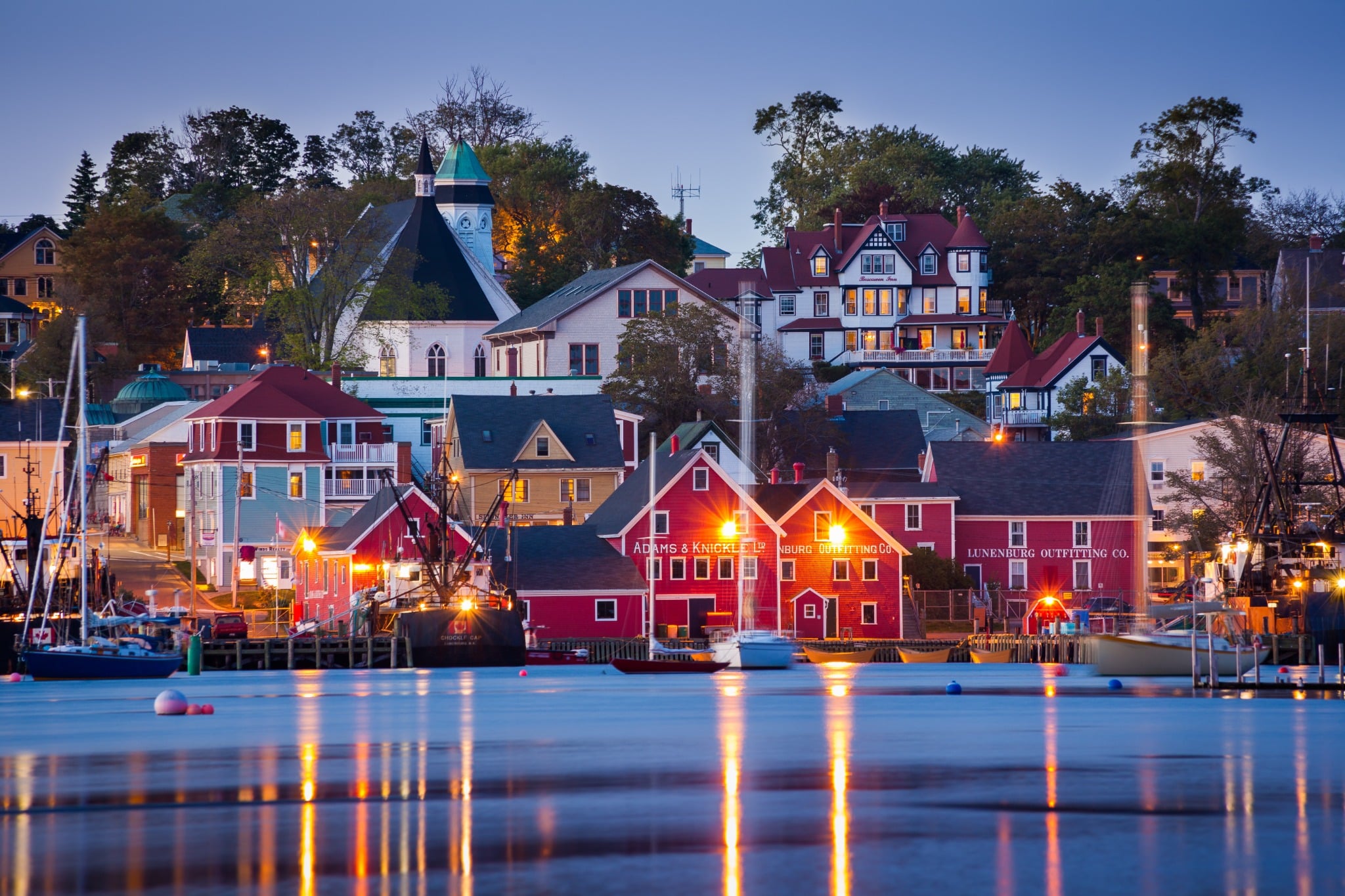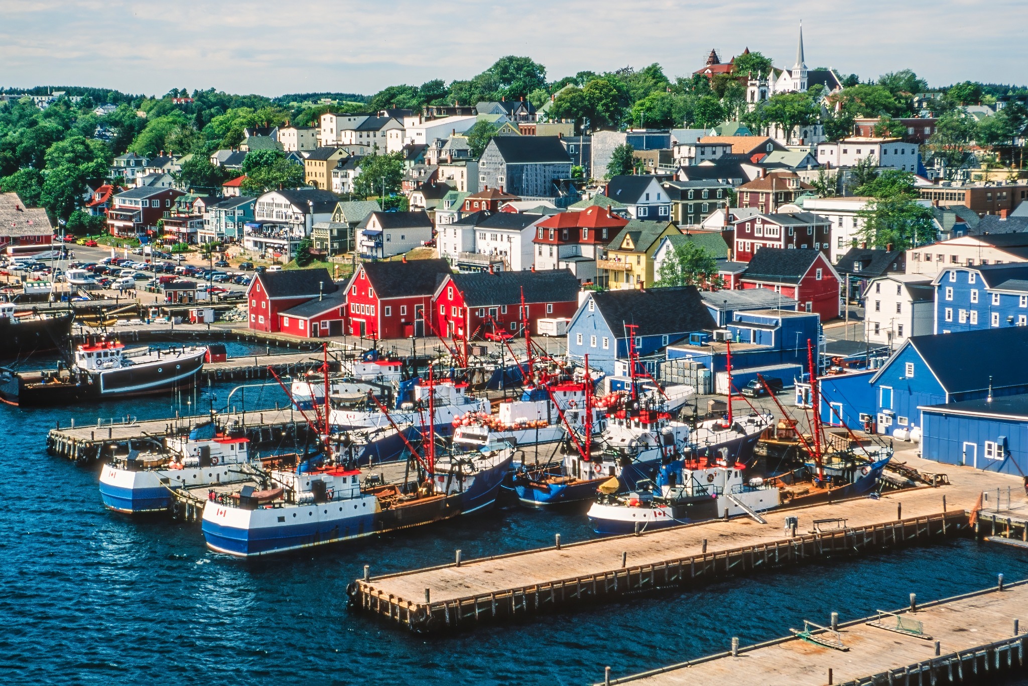 Na deze stop vervolg je de route richting Lunenburg. Bij aankomst valt meteen het kleurgebruik op: houten huizen in rood, blauw en geel staan langs de haven. Het stadje staat op de UNESCO Werelderfgoedlijst en dat merk je aan de goed bewaarde structuur en uitstraling.