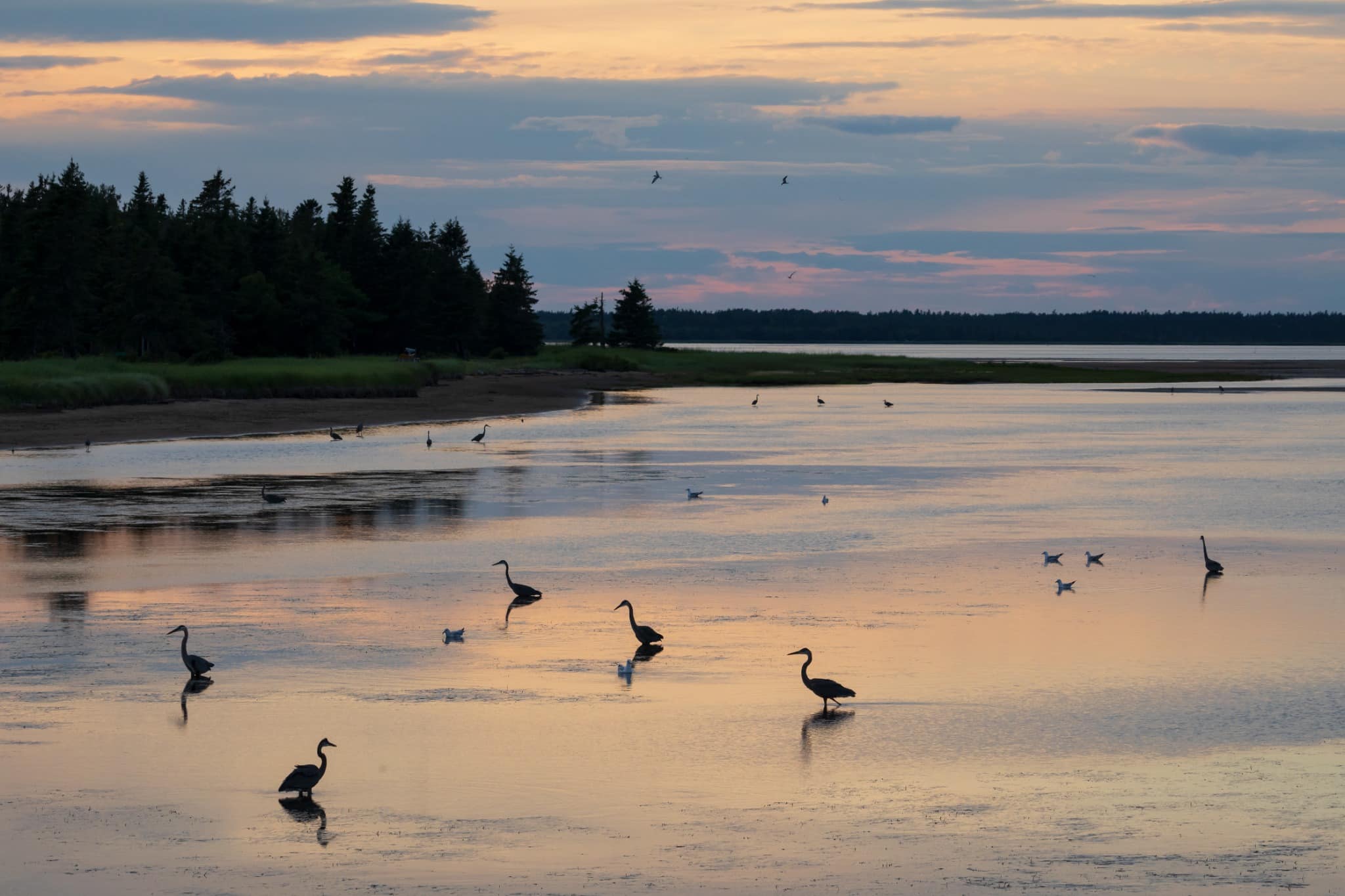 Je laat vandaag de Bay of Fundy achter je en rijdt richting de oostkust van New Brunswick. Onderweg merk je dat het landschap opnieuw verandert. De ruige kliffen maken plaats voor een vlakker gebied met bossen, rivieren en uiteindelijk brede kustlijnen aan de Golf van St. Lawrence.