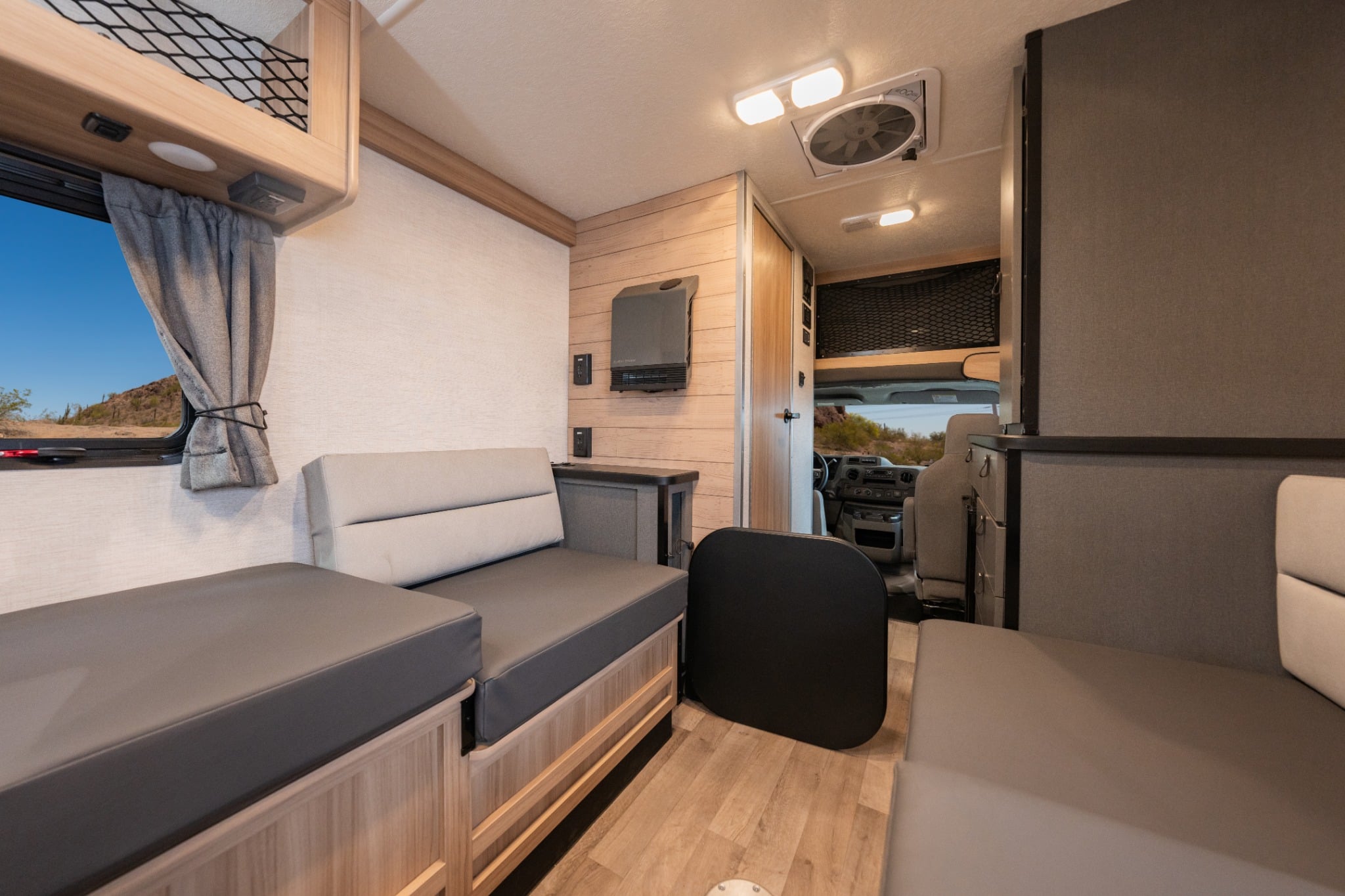 Hij past op een gewone parkeerplek, rijdt soepel en heeft een verrassend slimme indeling. Achterin vind je een zithoek die je ‘s avonds ombouwt tot een bed, een compacte keuken met elektrisch kookplaatje, een koelkast en zelfs een toilet en douche. Het is allemaal net even iets eenvoudiger dan in grotere modellen, maar dat maakt ‘m juist zo gebruiksvriendelijk. En: hij is betaalbaar. Ideaal als je liever je geld uitgeeft aan belevingen dan aan vierkante meters.