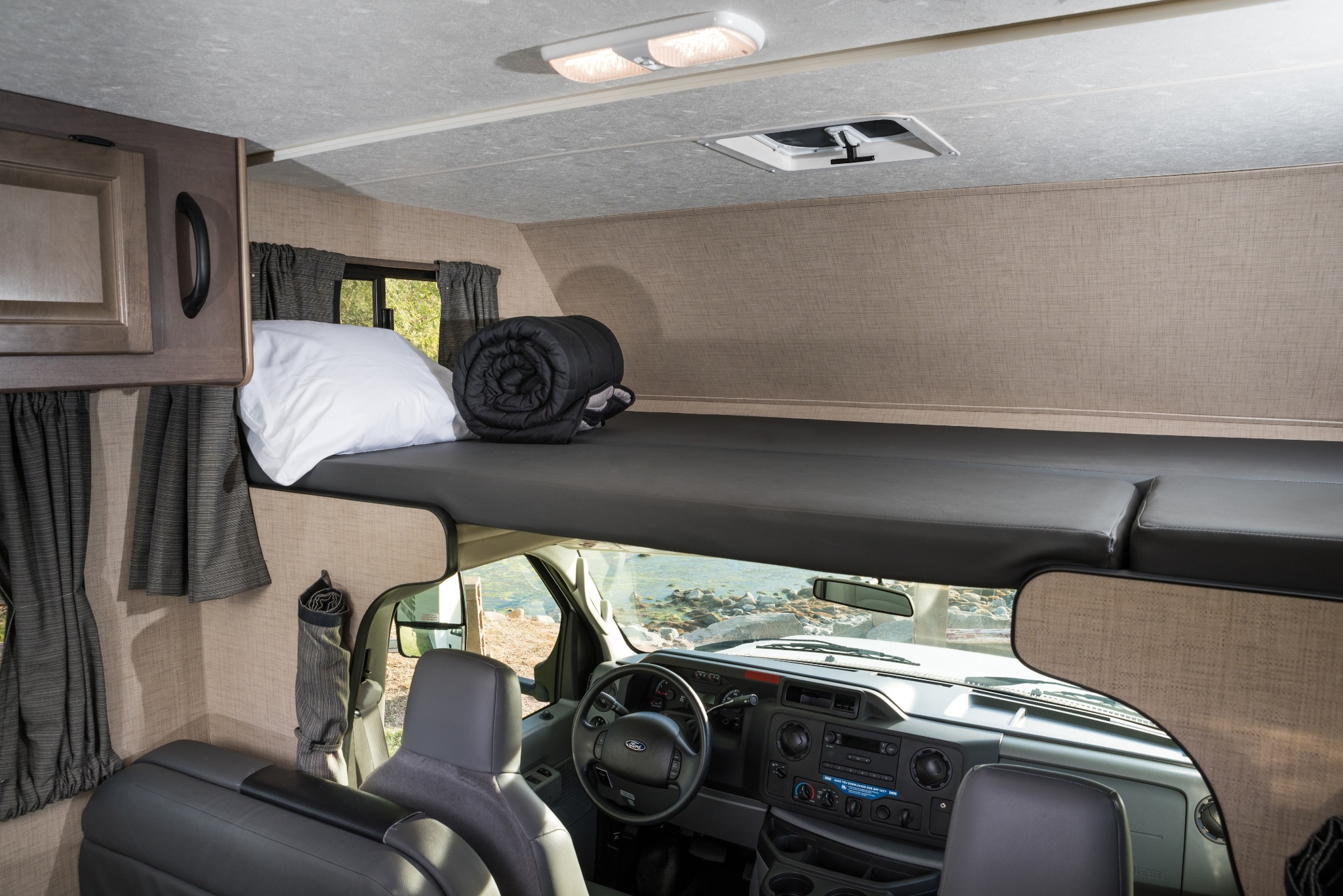 Als fijne middenklasser is de Cruise Canada C25 uitgerust met voldoende slaapruimte en net dat beetje meer leefruimte. Met een vast bed achterin en het cab-over bed boven de cabine kun je met maximaal vier personen comfortabel slapen. Ideaal voor twee volwassenen of een gezin met één of twee (jonge) kinderen. Een extra slaapoptie is het dinette bed, mogelijk voor een (klein) kind, waarbij de eettafel in de avond omgebouwd kan worden tot slaapplek.