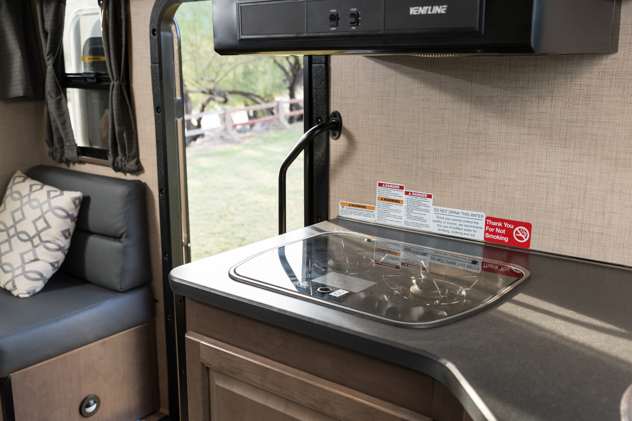 Aan boord vind je een keuken met drie gaspitten, koelkast met vriezer en magnetron. Er is voldoende opbergruimte voor boodschappen en kookgerei. Het sanitair is gescheiden: een douche met warm water aan de ene kant, en toilet met wastafel aan de andere. Dat maakt de ochtendspits op de camping net even makkelijker, zeker als je met meerdere mensen reist.