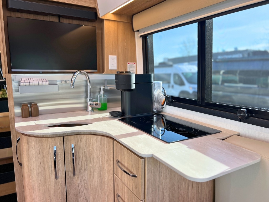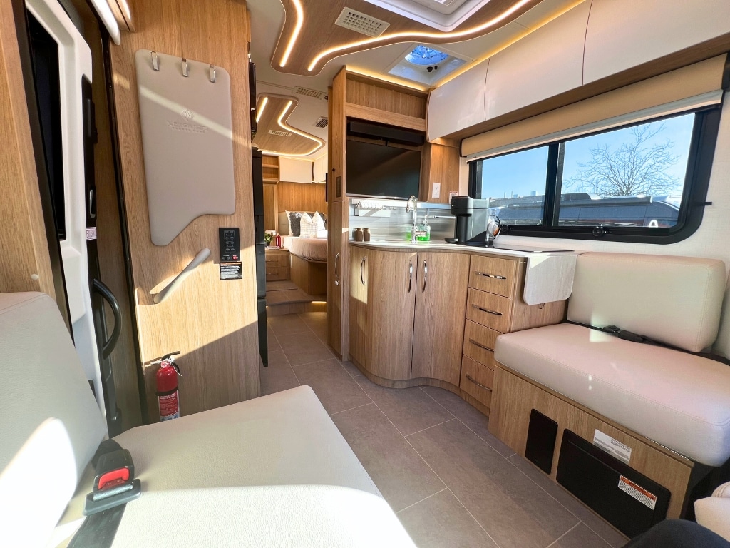Deze moderne motorhome is gebouwd op een Mercedes-Benz chassis met een 2.0-L Turbocharged I-4 dieselmotor zorgt dit voor een zeer comfortabele rijervaring. Daarnaast beschikt de Fraserway B+ Premium standaard over airconditioning, cruise control en een achteruitrijcamera.