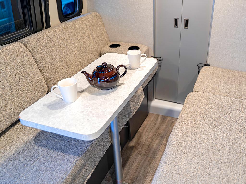 Compact comfort en moderne voorzieningen. Dat zijn in een notendop de kenmerken van de inrichting van deze Fraserway Van Conversion. Dankzij de grote ramen komt er veel daglicht binnen, wat de camper open en fris laat aanvoelen.