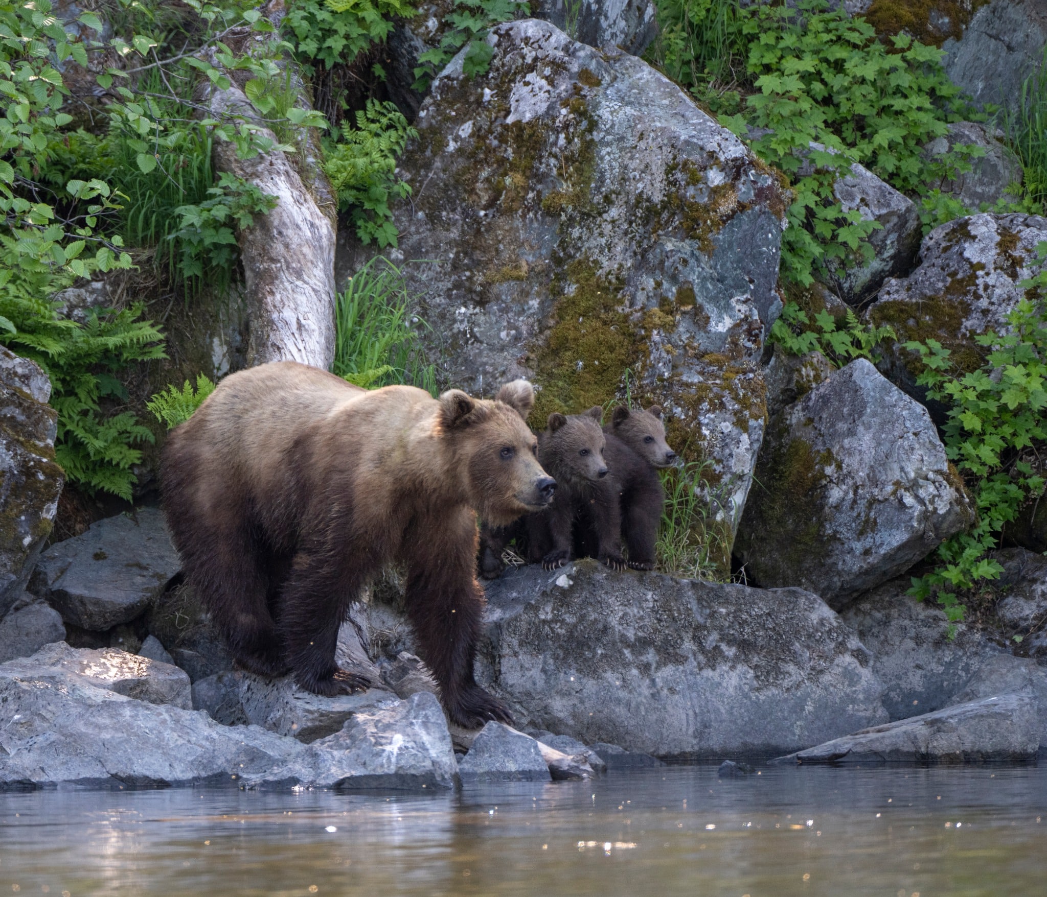 Na de bergen rijd je noordwaarts naar Prince Rupert, waar je aan boord gaat van de ferry door de Inside Passage. Dit traject over het water is geen snelle oversteek, maar een dag waarop je continu langs eilanden, bossen en afgelegen kustlijnen vaart. Met wat geluk zie je onderweg walvissen of zeearenden.