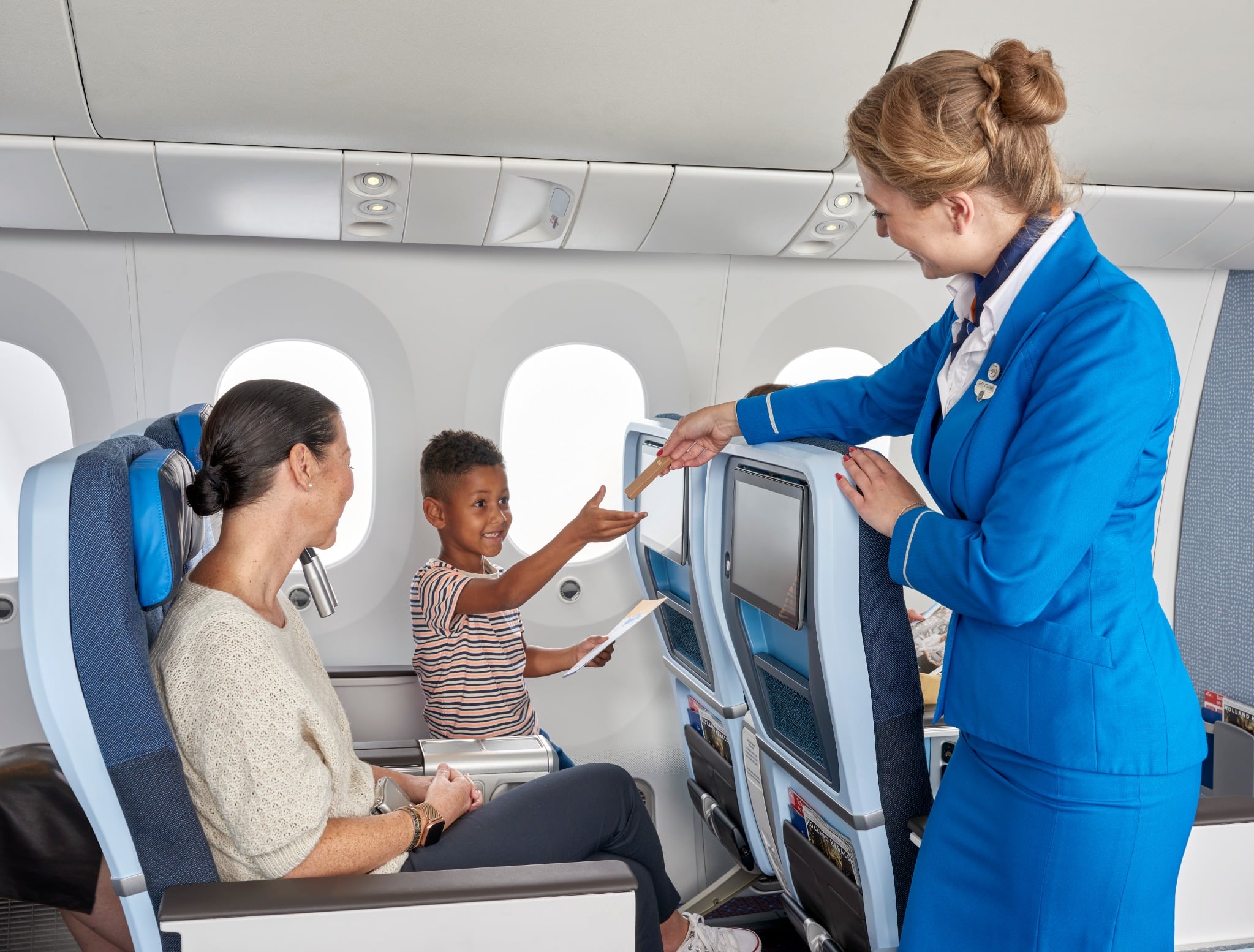 Tijdens een lange vlucht is het prettig om iets te doen te hebben. Daarom beschikken intercontinentale vliegtuigen van KLM over een persoonlijk entertainmentsysteem bij elke stoel.