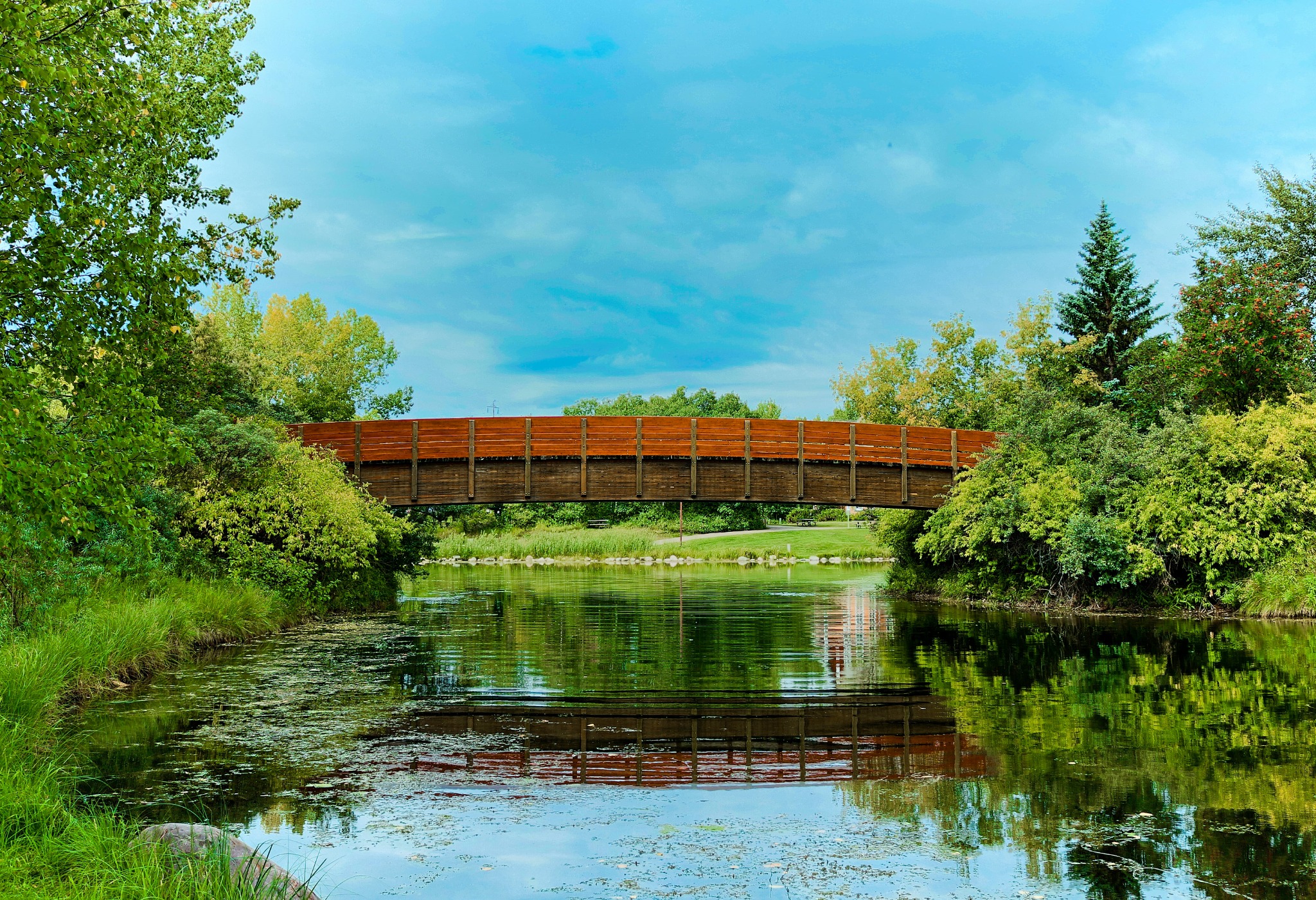 Een belangrijk kenmerk van Red Deer is het uitgebreide parksysteem. De stad wordt doorsneden door de Red Deer River, met aan beide zijden groene zones die met elkaar verbonden zijn via tientallen kilometers aan wandel en fietspaden. Deze paden lopen niet alleen langs het water, maar ook door bossen, open graslanden en stille woonwijken. Voor een ochtendwandeling of een korte fietstocht hoef je de stad dus niet uit. Dat voelt typisch Canadees: natuur is hier geen dagtrip, maar onderdeel van het dagelijks leven.