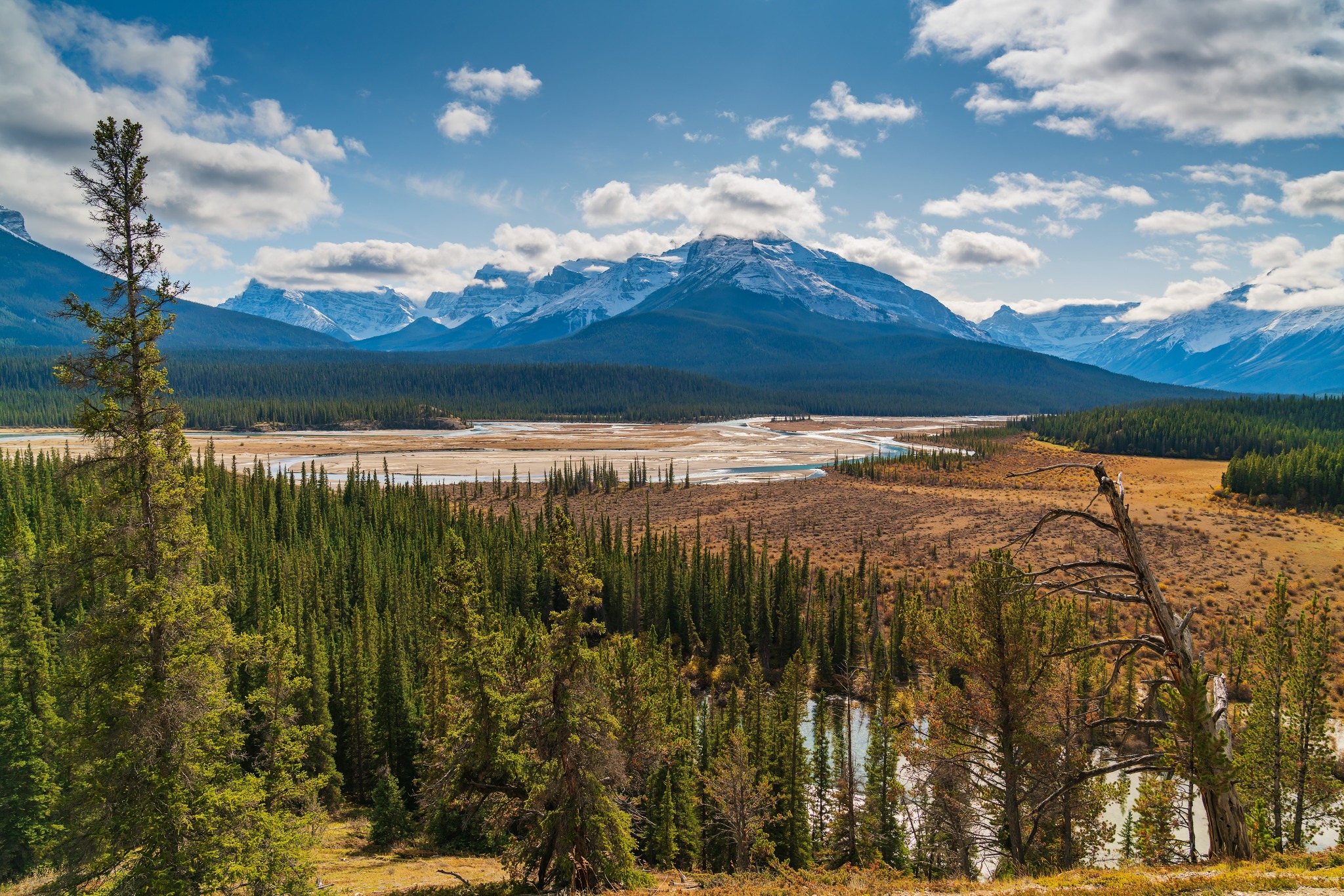 Wat Saskatchewan River Crossing bijzonder maakt, is de openheid van het landschap. In tegenstelling tot de meer ingesloten valleien rond Lake Louise of Moraine Lake, voelt deze plek ruimer. De rivieren hebben hier de ruimte om te meanderen en laten brede grindbanken achter. Het water is melkachtig blauw door het gletsjerslib dat uit de bergen komt.